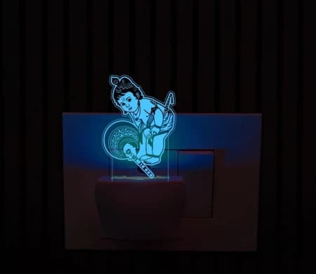 Giftkidukan Cute Lord Bal Krishna 3D Illusion Plug Night Lamp God Idol Lamp Night Lamp (6 cm, Multicolor)